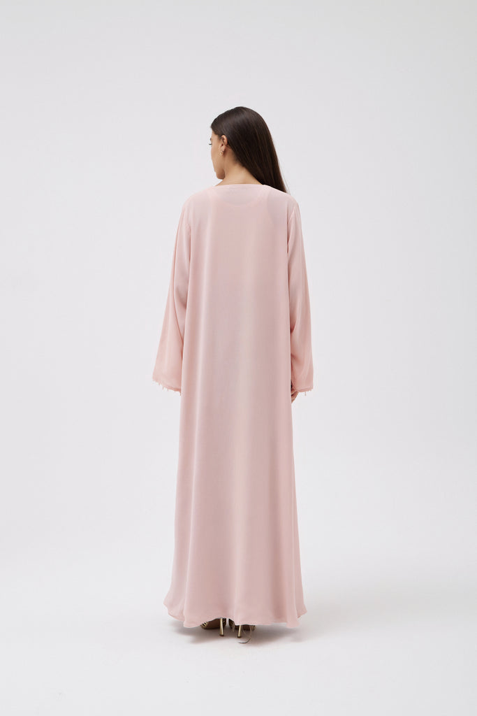 Laissez-vous séduire par l’élégance intemporelle de notre abaya fendue en mousseline d’Indonésie. Confectionnée dans un tissu aérien et raffiné, cette abaya offre un tombé fluide et une allure gracieuse. La fente latérale ornée de perles cousues à la main subtile apporte une touche de modernité et de féminité, idéale pour les occasions spéciales ou un look quotidien sophistiqué.
