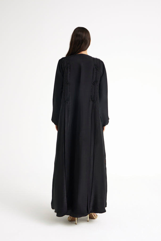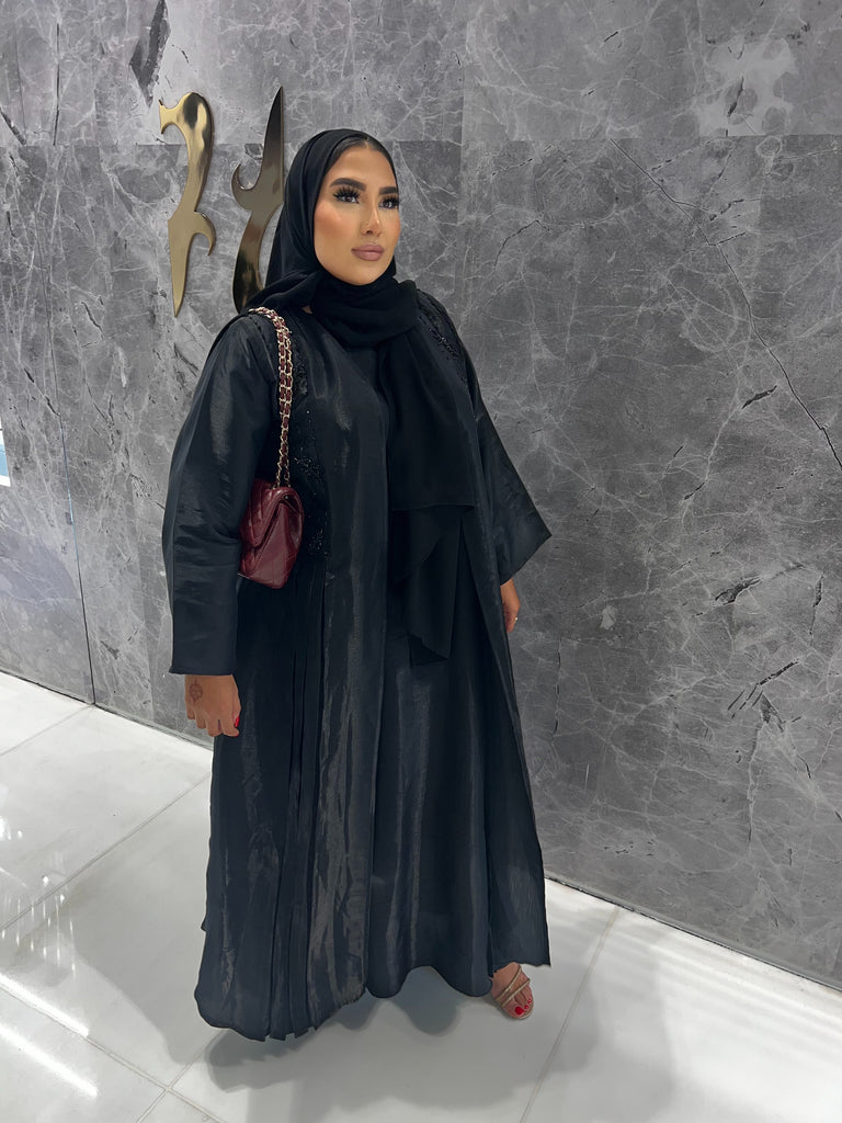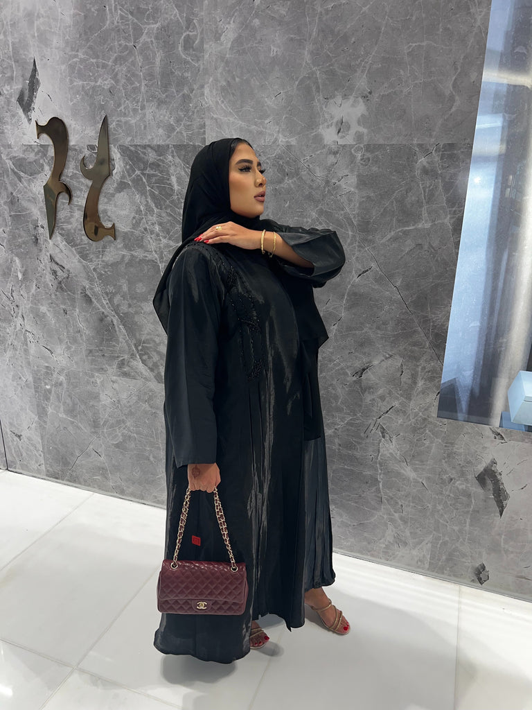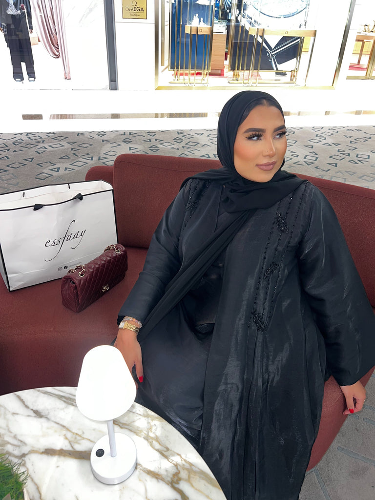 Découvrez notre Abaya Organza Noir ! Fabriquée à Dubai en organza de haute qualité, cette abaya est légère, élégante et confortable. Elle est livrée avec une sous abaya incluse pour plus de commodité et est ornée de perles cousues à la main pour une touche de sophistication.