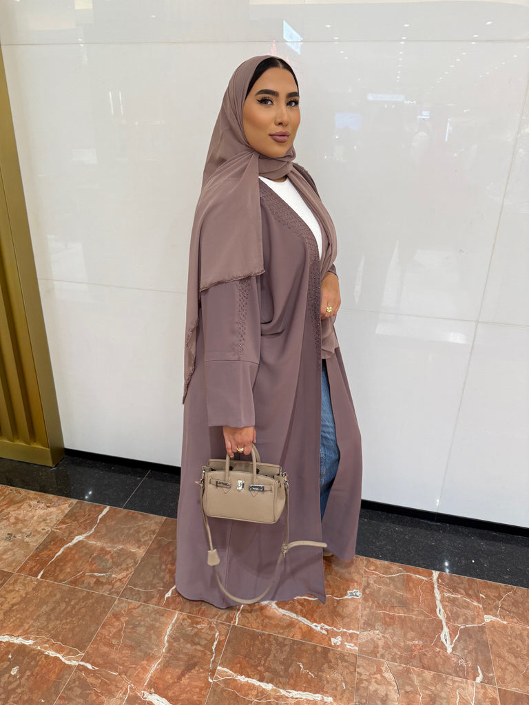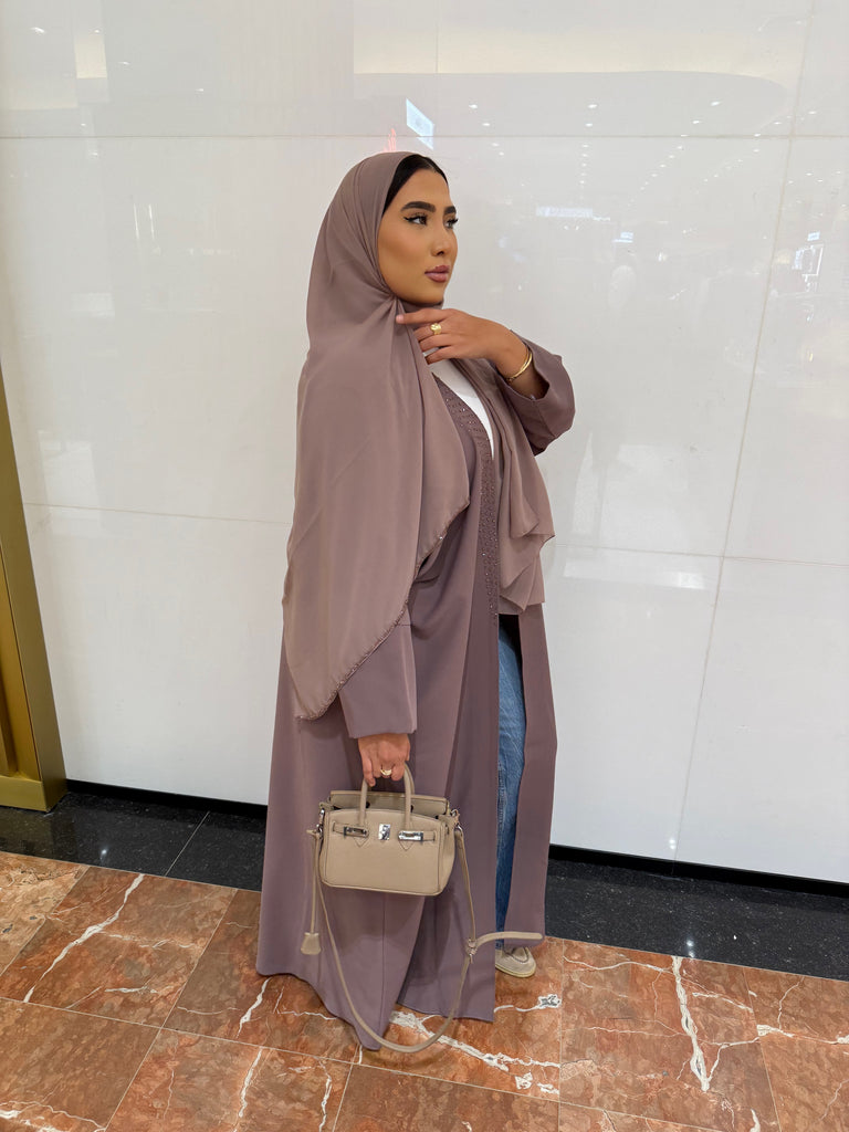 Faites sensation avec l'Abaya Shiny ! Fabriquée avec un tissu opaque de qualité, cette abaya de Dubai est ornée de perles élégantes sur le devant, ajoutant une touche de glamour à votre tenue. Soyez à la fois élégante et confortable avec cette pièce unique qui attirera tous les regards !